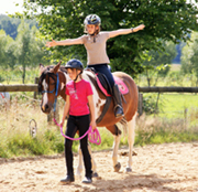 Persönliche und soziale Entwicklung von Kindern zu fördern, ist unser Hauptanliegen. Es ergibt sich von selbst, dass Kinder dabei auch das korrekte und feine Reiten erlernen.